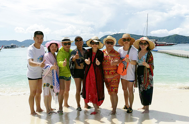 這個(gè)火辣辣的下午,家人們的歡聲笑語(yǔ)回蕩在整個(gè)珊瑚島上空,熱帶、沙灘、落日、美麗的“水晶晶(泰語(yǔ)意為“美女”)”和帥氣的“老媽媽”(泰語(yǔ)意為“帥哥”)們成為了島上一道亮麗的風(fēng)景線。