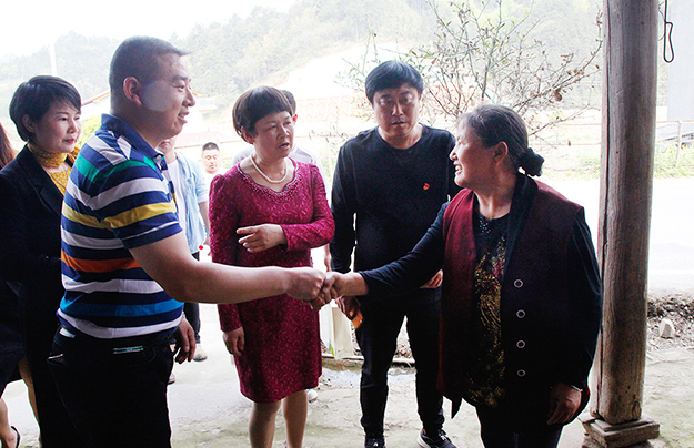 ▲ 2016年2月4日,胡國(guó)安董事長(zhǎng)帶領(lǐng)綠之韻愛心志愿者們?cè)俅位氐胶掖澹瑸榇謇锏呢毨羲蛠砹宋繂柦稹⒚子秃腿沼闷罚瑸猷l(xiāng)親們送上了新春的祝福。