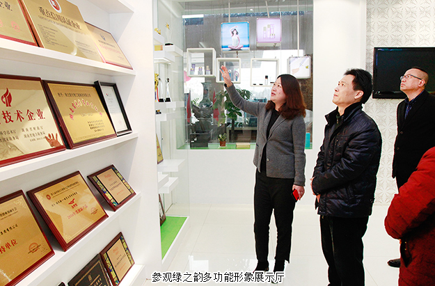 調研組領導一行先后參觀了綠之韻集團黨建文化教育基地、多功能產品展示廳、集團綜合辦公區(qū)域。綠之韻集團董事、總裁勞嘉詳細回顧了綠之韻入駐園區(qū)十多年的發(fā)展歷程,對園區(qū)歷任領導班子為企業(yè)不遺余力的扶持表示真誠感謝,同時對綠之韻集團在企業(yè)稅收、產業(yè)扶貧、非公黨建和公益慈善等方面的工作情況作了匯報。