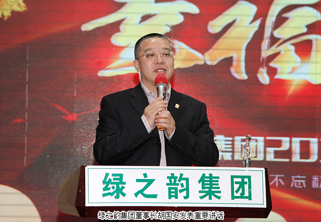 在全場熱烈的掌聲中,綠之韻集團(tuán)董事長胡國安發(fā)表重要講話。他向全體銳意進(jìn)取、開拓創(chuàng)新的綠之韻家人致以最誠摯的新年祝福,給所有獲獎?wù)哂枰粤烁叨仍u價。他總結(jié)了綠之韻集團(tuán)十五年的發(fā)展歷程,深情闡述自己的創(chuàng)業(yè)經(jīng)歷和創(chuàng)業(yè)精神。他表示:2017年是非常不平凡的一年,能將種種不可能變?yōu)榭赡埽康氖穷B強(qiáng)的毅力和不懈的奮斗。我們?yōu)榱斯餐膲粝牒托腋#⒓鐟?zhàn)斗。我們也在奮斗中享受幸福、感知幸福。2018年綠之韻將始終堅(jiān)持三個“不改變”:即長期為廣大經(jīng)銷商提供質(zhì)高品優(yōu)的產(chǎn)品不改變,維護(hù)經(jīng)銷商的利益、堅(jiān)持“永續(xù)經(jīng)營、合作共贏”的理念不改變,對于市場扶持的投資不改變,讓所有綠之韻人共享企業(yè)發(fā)展成果。近年來,湖南省和長沙市連續(xù)發(fā)布《關(guān)于支持非公有制經(jīng)濟(jì)健康發(fā)展的十條意見》《建設(shè)國家智能制造中心(2017-2019)三年行動計(jì)劃》《長沙市人民政府關(guān)于發(fā)展資本市場的若干意見》以及“長沙工業(yè)30條”“人才新政20條”等多項(xiàng)促進(jìn)非公經(jīng)濟(jì)發(fā)展、鼓勵扶持民營企業(yè)發(fā)展的利好政策,綠之韻將積極研究企業(yè)發(fā)展新措施和新方法,充分發(fā)揮出綠色大健康全產(chǎn)業(yè)鏈優(yōu)勢,助力中醫(yī)藥產(chǎn)業(yè)、健康中國和湖南“一帶一路”戰(zhàn)略發(fā)展,科學(xué)謀劃,在未來五年,全力打造3—5家上市公司,提升公司整體盈利水平和市場競爭力。他鼓勵大家要務(wù)實(shí)創(chuàng)新,科學(xué)發(fā)展,在綠之韻未來“大品牌、大健康、大金融”三大平臺中找到奮斗中的幸福。