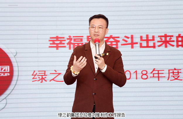 十五年來,走過風(fēng)雨,締造輝煌,在通往“百年企業(yè)、世界名牌”的道路上,綠之韻人感恩惟馨,一路前行,用激情、責(zé)任、擔(dān)當(dāng)和智慧,開拓屬于我們自己的“中國夢、綠之韻夢”。會上,綠之韻集團(tuán)總經(jīng)理劉維利就2017年度市場工作進(jìn)行總結(jié),并簡要闡述了2018年集團(tuán)市場發(fā)展規(guī)劃。2017年我們圍繞“大品牌、大健康、大金融”九字戰(zhàn)略方針,平穩(wěn)健康有序的發(fā)展,滿懷信心,朝著更高的目標(biāo)邁進(jìn)。2018年我們共同恪守核心價值觀和使命,延續(xù)五年戰(zhàn)略目標(biāo),打造雙百億工程,改變戰(zhàn)術(shù),升級完善服務(wù)、平臺、運(yùn)營模式、產(chǎn)品、物流體系五大策略,為市場和諧發(fā)展保駕護(hù)航,創(chuàng)造新的輝煌!