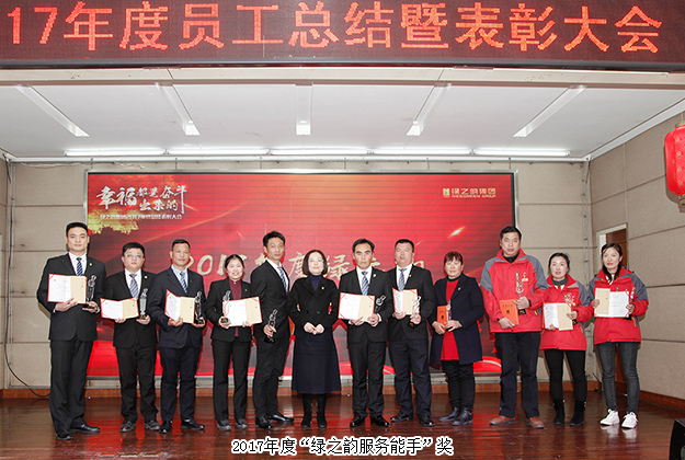 成績源于拼搏,汗水鑄就輝煌。過去的一年,在集團(tuán)公司的前瞻引領(lǐng)下,所有綠之韻人深入學(xué)習(xí)貫徹黨的十九大精神,同舟共濟(jì)、同甘共苦,堅(jiān)定信念、砥礪前行,為公司持續(xù)健康發(fā)展貢獻(xiàn)力量,涌現(xiàn)出了一大批忠誠企業(yè)、作風(fēng)優(yōu)良、奮發(fā)有為、業(yè)績突出的先進(jìn)模范集體和先進(jìn)個人。在此次年度員工總結(jié)表彰大會上,公司頒發(fā)了2017年第四季度“星級優(yōu)秀員工”“優(yōu)秀集體”,2017年度綠之韻集團(tuán)黨委“先進(jìn)基層支部”和“優(yōu)秀黨員”,2017年度“優(yōu)秀指導(dǎo)老師”“最佳新人”“綠之韻服務(wù)能手”“綠之韻風(fēng)范獎”“優(yōu)秀管理者”等多個獎項(xiàng)。一份份證書和一個個獎杯不僅是榮譽(yù)的象征,更見證了綠之韻人的堅(jiān)守與付出。