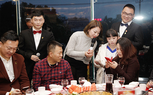 萬眾期待的抽獎環(huán)節(jié)讓全場心弦緊扣。此次新春團(tuán)拜會,集團(tuán)公司全體員工準(zhǔn)備了豐盛的獎品,大家觀看著精彩節(jié)目,滿懷信心與期待地參與每一次的抽獎。新春團(tuán)拜會最后由胡國安董事長現(xiàn)場抽取驚喜現(xiàn)金大禮,為家人們送去好運(yùn)與祝福。同時,在2018金犬福年到來之際,主持人代表全體綠之韻家人給胡國安董事長及其他幾位幸運(yùn)的家人獻(xiàn)上本命年“紅色”禮品,現(xiàn)場溫情流動,將整場晚會推向最高潮。
