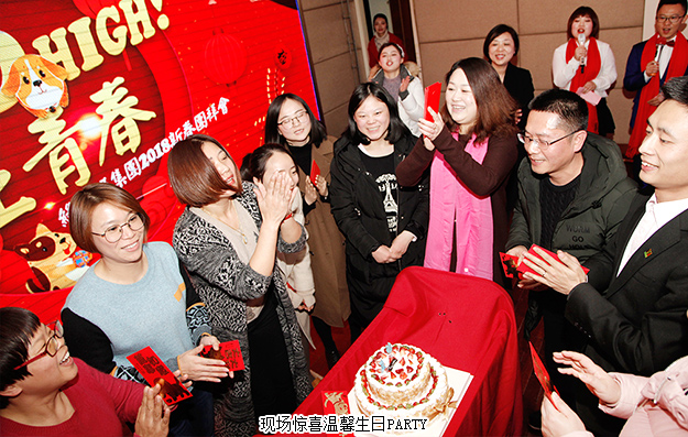 新年伊始山川秀,金犬初臨日月長。晚上舉行的綠之韻集團(tuán)新春團(tuán)拜會,公司各部門準(zhǔn)備了精彩絕倫的節(jié)目,為汪年新春獻(xiàn)上一道豐盛的文化視聽盛宴:充滿活力的少女團(tuán)舞蹈、性感摩登的T臺秀、清新可愛的《咖喱咖喱》、激情澎湃的歌曲《無樂不作》,幽默風(fēng)趣的小品《白骨精三打?qū)O悟空》,韻味十足的古典舞蹈《絨花》……現(xiàn)場家人們精彩真摯的表演,贏得了陣陣熱烈掌聲,把團(tuán)拜會的氣氛一次次推向高潮。尤其溫暖的是晚會現(xiàn)場,公司還為二月份過生日的員工們準(zhǔn)備了驚喜難忘的生日宴,全場共唱生日歌。綠之韻人親密無間,載歌載舞,歡聲笑語,熱鬧非凡。