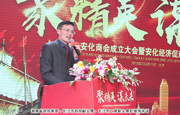 安化縣人民政府縣長肖義代表安化縣委縣政府、縣人大、縣政協(xié)向所有在外的安化老鄉(xiāng)致以誠摯的問候。他表示,安化作為一座正在飛速發(fā)展中的縣城,也是一片充滿生機活力的創(chuàng)新創(chuàng)業(yè)熱土,需要安化籍企業(yè)家們?nèi)翰呷毫Γ瑢⒓亦l(xiāng)建設(shè)的更好。安化縣委縣政府高度重視安化籍企業(yè)家返鄉(xiāng)創(chuàng)業(yè)工作,希望大家積極返鄉(xiāng)創(chuàng)業(yè),攜手共創(chuàng)安化的美好明天。湖南省政協(xié)常委、長沙市政協(xié)副主席、長沙市工商聯(lián)主席彭繼球在致辭中對長沙市安化商會的成立表示祝賀并對胡國安董事長在精準扶貧方面做出的貢獻給予了高度肯定。他希望,未來長沙市安化商會在胡國安會長的帶領(lǐng)下,能夠緊緊抓住發(fā)展的機遇,完善商會功能,發(fā)揮商會作用,彰顯商會價值,真正做到“民主辦會、服務(wù)立會、團結(jié)興會、文化強會、黨建促會”,成功躋身一流地方商會行列。