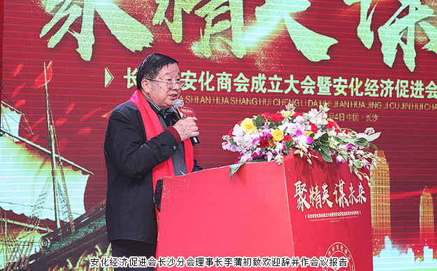 會議伊始,長沙市社會組織管理局局長李紅輝宣讀《長沙市民政局關(guān)于同意成立長沙市安化商會的行政許可決定》。安化經(jīng)濟促進會長沙分會理事長李蒲初致歡迎辭并作工作報告。他表示,長沙市安化商會的成立是全體安化籍企業(yè)家的一件大喜事,是搭建精誠合作、抱團發(fā)展,實現(xiàn)行業(yè)、區(qū)域大融合,增強在長安化老鄉(xiāng)凝聚力和向心力的平臺。未來,長沙市安化商會將為長沙的安化企業(yè)家構(gòu)建一個互幫互助、交流合作的平臺,為安化企業(yè)家在企業(yè)和政府之間建立一個橋梁和紐帶,發(fā)揮平臺優(yōu)勢,更好地服務(wù)企業(yè)、服務(wù)會員。原省公安廳黨委副書記、常務(wù)副廳長胡旭曦,原北京市公安局現(xiàn)役辦主任諶再來,原湖南省糧食局局長、黨組書記夏文星,原湖南省行業(yè)辦主任、黨組書記夏純玉等擔任商會顧問。