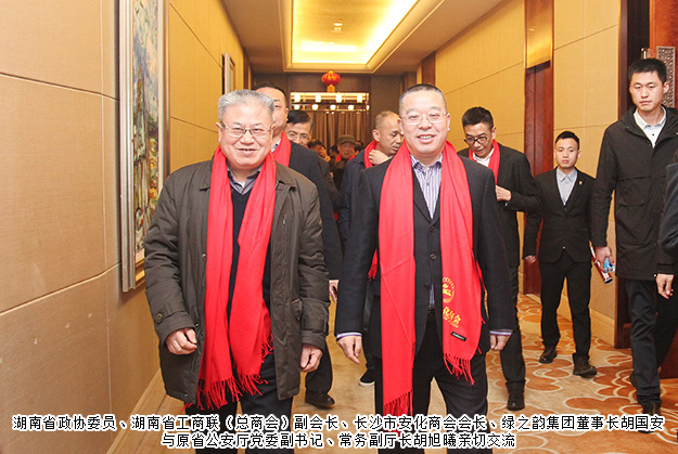 聚精英,謀未來。2018年2月4日,長沙市安化商會成立大會暨安化經(jīng)濟促進會長沙分會年會在長沙舉行。湖南省政協(xié)常委、長沙市政協(xié)副主席、長沙市工商聯(lián)主席彭繼球,中共益陽市委常委、統(tǒng)戰(zhàn)部部長周振宇,安化縣人民政府縣長肖義,長沙市民政局黨委副書記、副局長伍仁華,中共安化縣委副書記王新宇,益陽市人民政府駐長沙辦事處主任聶超美,長沙市工商聯(lián)副主席張明剛,安化縣政協(xié)副主席、總商會會長李艷云,長沙市社會組織管理局局長李紅輝等領(lǐng)導嘉賓出席會議。湖南省政協(xié)委員、湖南省工商聯(lián)(總商會)副會長、長沙市安化商會會長、綠之韻集團董事長胡國安,綠之韻集團董事、總裁勞嘉,綠之韻集團常務(wù)副總經(jīng)理胡均安,綠之韻集團副總經(jīng)理夏運良受邀參加活動。大會還邀請了來自深圳、廈門、株洲、益陽等兄弟安化商會及長沙各行業(yè)安化籍知名企業(yè)和精英人士 400 多人匯智聚力一堂,共謀發(fā)展大計。