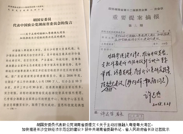 本次大會聽取并審議了十一屆省政協(xié)副主席賴明勇代表十一屆省政協(xié)常委會作的《政協(xié)湖南省第十一屆委員會常務(wù)委員會關(guān)于五年來提案工作情況的報告》,會后分組進行了審議討論。此次大會,胡國安委員向湖南省政協(xié)十二屆一次會議提交了《關(guān)于新時代下民營企業(yè)家全面弘揚踐行企業(yè)家精神的建議》和《關(guān)于推行“醫(yī)養(yǎng)護一體化”健康養(yǎng)老模式的建議》兩件個人提案,代表致公黨湖南省委提交《關(guān)于主動對接融入粵港粵大灣區(qū),加快推進長沙空鐵經(jīng)濟示范區(qū)的建議》一件集體提案。其中,提案《關(guān)于推行“醫(yī)養(yǎng)護一體化”健康養(yǎng)老模式的幾點建議》內(nèi)容緊扣當(dāng)前社會熱點,重點關(guān)注民生養(yǎng)老問題,對當(dāng)前養(yǎng)老形勢分析深刻,建議務(wù)實,發(fā)人深思,受到廣大媒體、與會委員以及社會大眾的強烈關(guān)注。提案《關(guān)于主動對接融入粵港粵大灣區(qū),加快推進長沙空鐵經(jīng)濟示范區(qū)的建議》(代表致公黨湖南省委),獲湖南省人民政府省長許達哲重要批示。胡國安董事長表示,“粵港澳大灣區(qū)”作為超級“夢之灣”,是黨中央、國務(wù)院立足國內(nèi)外發(fā)展新形勢新要求做出的重大戰(zhàn)略部署,是湖南長沙努力“創(chuàng)建國家中心城市,實現(xiàn)基本現(xiàn)代化”戰(zhàn)略目標(biāo)的重大機遇。綠之韻集團作為一家具有濃郁的湖湘情結(jié)和強烈的做大做強發(fā)展意愿的湖湘本土企業(yè),將搶抓機遇,順勢發(fā)力,逐步在生物制藥、醫(yī)療養(yǎng)老、中醫(yī)養(yǎng)生、國醫(yī)館、連鎖酒店、健康管理等板塊同粵港澳大灣區(qū)進行有效產(chǎn)業(yè)對接,積極推進區(qū)域協(xié)調(diào)發(fā)展戰(zhàn)略,努力為湘粵港澳經(jīng)濟發(fā)展貢獻力量!