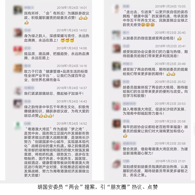 會議結(jié)束后,胡國安委員仍然沉浸在三天前聆聽政府工作報告的激動和振奮之中。他表示,政府工作報告中“提品質(zhì)、建品牌、大力發(fā)展實體經(jīng)濟”等內(nèi)容振奮人心,給我們民營企業(yè)家們又打了一劑“強心針”。綠之韻集團將認真貫徹落實湖南“兩會”精神指示,結(jié)合省市《關(guān)于支持非公有制經(jīng)濟健康發(fā)展的十條意見》《建設(shè)國家智能制造中心(2017-2019)三年行動計劃》《長沙市人民政府關(guān)于發(fā)展資本市場的若干意見》以及“長沙工業(yè)30條”“人才新政20條”等多項促進民營經(jīng)濟發(fā)展、鼓勵扶持民營企業(yè)上市的利好政策,搶抓機遇,奮發(fā)有為,充分發(fā)揮綠色大健康全產(chǎn)業(yè)鏈優(yōu)勢,助力中醫(yī)藥產(chǎn)業(yè)、健康中國和湖南“一帶一部”戰(zhàn)略發(fā)展;堅持以研發(fā)具備核心競爭力產(chǎn)品為發(fā)展方向,加大研發(fā)經(jīng)費投入,加強與湖南中醫(yī)藥大學(xué)、湖南農(nóng)業(yè)大學(xué)、南方醫(yī)科大學(xué)的產(chǎn)學(xué)研深度合作,增強企業(yè)軟硬件體系建設(shè),逐步布局生物制藥、健康干預(yù)、健康體檢、健康養(yǎng)老、連鎖酒店、國醫(yī)堂、中醫(yī)養(yǎng)生等多元產(chǎn)業(yè)領(lǐng)域;積極響應(yīng)國家“鼓勵和支持民營企業(yè)結(jié)合金融資本上市”的號召,培養(yǎng)專業(yè)金融管理團隊,構(gòu)建健康產(chǎn)業(yè)下的大金融產(chǎn)業(yè)布局體系,打造“雙百億”工程。圍繞“雙百億”工程,未來5年,綠之韻集團將不斷推進優(yōu)質(zhì)資源向集團公司擬上市子產(chǎn)業(yè)板塊集中,全力打造3—5家美國、中國香港上市公司,提升集團公司整體盈利水平和國際市場競爭力,為湖南省經(jīng)濟社會跨越式發(fā)展再立新功。