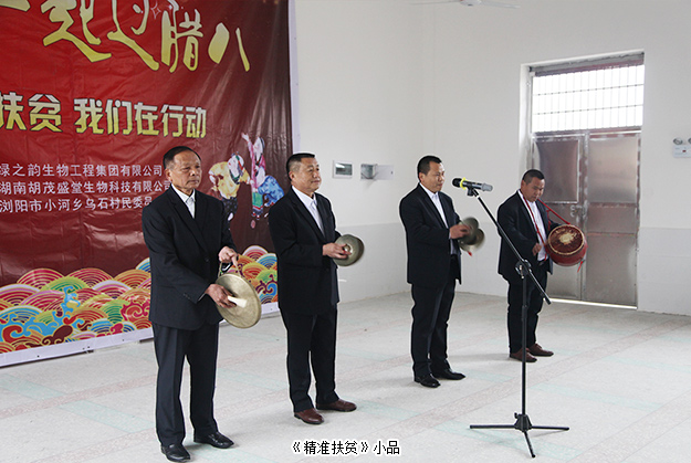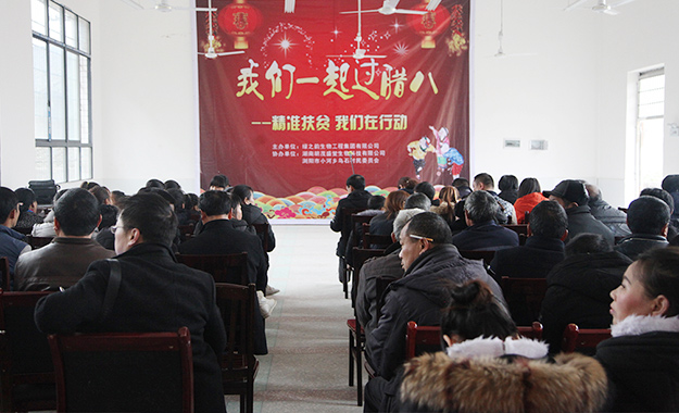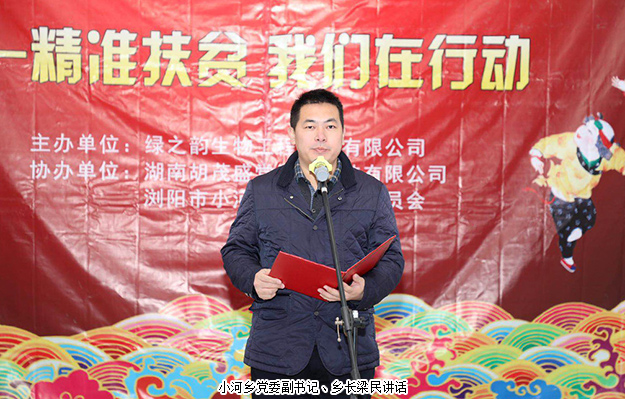 辭舊迎新,喜迎八方來賓;寒冬送暖,共助精準扶貧。2018年1月24日,為了深入貫徹黨的十九大精神,扎實做好精準扶貧工作,進一步增進幫扶企業(yè)和群眾之間的感情,在臘八節(jié)濃濃的節(jié)日氛圍中,由綠之韻集團主辦、湖南胡茂盛堂生物科技有限公司和瀏陽市小河鄉(xiāng)烏石村協(xié)辦的“精準扶貧,我們在行動”主題活動——烏石農(nóng)產(chǎn)品直購會和項目簽約啟動會成功舉行。小河鄉(xiāng)黨委副書記、鄉(xiāng)長梁民,瀏陽經(jīng)開區(qū)管委會紀檢監(jiān)察室主任助理鄧水平,烏石村村支部書記賴平;綠之韻集團董事總裁、綠之韻公益基金會理事長勞嘉,綠之韻集團黨委書記劉云、副書記許達仲一行,與烏石村黨員、群眾、村組干部等近百人參加此次活動。