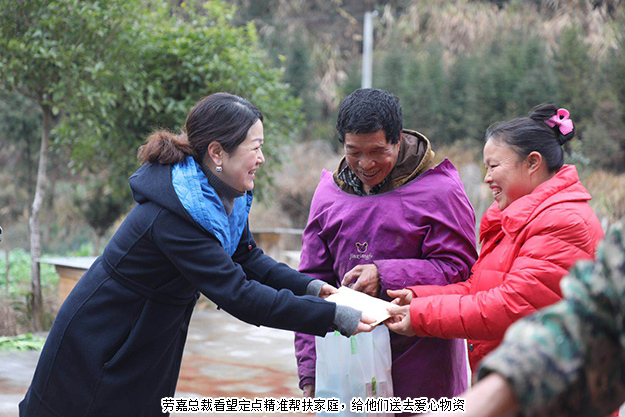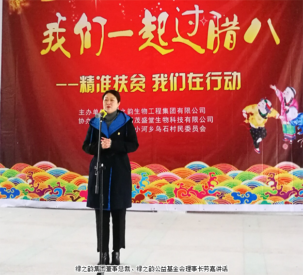 綠之韻集團董事總裁、綠之韻公益基金會理事長勞嘉講話。她說道,綠之韻集團15年來始終以“關愛生命,造福人類”為永恒價值追求。自2015年開始,集團先后多次走進瀏陽市小河鄉(xiāng)烏石村,為當?shù)刎毨W子送去溫暖,在小河鄉(xiāng)建檔立卡精準幫扶貧困家庭,及時為他們送去溫暖和關懷,幫助他們銷售雞蛋、土雞、河魚等農(nóng)產(chǎn)品,解決貧困戶生產(chǎn)、生活上面臨的困難。集團黨委與綠之韻公益基金會緊密配合省委省政府、市委市政府的公益扶貧項目,除了大力參與賑災、扶貧、幫困等社會慈善事業(yè)之外,還積極開展具有綠之韻品牌和社會影響力的公益活動,通過產(chǎn)業(yè)式、造血式扶貧支援新農(nóng)村建設。未來,綠之韻集團將繼續(xù)創(chuàng)新工作思路,注重扶貧實效,進一步推動輸血式扶貧向產(chǎn)業(yè)式扶貧、造血式扶貧轉(zhuǎn)變,繼續(xù)盡最大努力幫助解決扶貧地區(qū)的實際困難,幫助困難群眾建立脫貧希望,尋找致富方法,使綠之韻的發(fā)展成果惠及更多受援地區(qū)的貧困群眾,為貧困地區(qū)發(fā)展盡一份微薄之力!