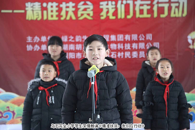 凜冽的寒風擋不住送關懷的腳步,入冬的嚴寒冷卻不了送溫暖的心。本次活動由綠之韻國際商學院院辦公室副主任王壯和烏石村張娟老師共同主持。瀏陽經(jīng)開區(qū)管委會紀檢監(jiān)察室主任助理鄧水平致歡迎詞,他首先對綠之韻集團熱心公益、助力精準扶貧的行為表示衷心感謝。在黨中央的“脫貧攻堅”號召下,在各級黨委政府的關心幫助下,在各界愛心企業(yè)的幫扶下,烏石村的精準扶貧工作取得了階段性的勝利,到2017年底“省定貧困村”的窮帽子勝利摘掉了,村組道路實現(xiàn)硬化、亮化,村容村貌實現(xiàn)了美化,水利設施逐步完善,醫(yī)療衛(wèi)生、義務教育有了保障,全村飲水安全可靠,村民致富道路寬敞了。今天這些成績的取得,得益于黨中央的扶貧政策順利落實,得益于各級黨委政府的正確領導,得益于像綠之韻集團這樣的愛心企業(yè)無私幫助。下一步支村兩委將繼續(xù)在十九大精神的指引下,團結(jié)拼博,銳意進取,真抓實干,帶領全村一個不落走向共同富裕的小康社會。