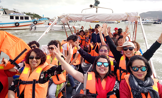 綠之韻營(yíng)銷精英越南榮耀之旅的重頭戲便是出海,黑島、竹島、蠶島、海燕島,每一個(gè)島都有它的獨(dú)特韻味,冒著黑煙的古老木船從碼頭開往不同的島嶼。在島嶼上享用美食,享受海浪沙灘,海水的顏色從孔雀藍(lán)過度到深藍(lán),大朵大朵潔白的云,陽光灑向海面,每一幀剪影都是一幅風(fēng)景畫。