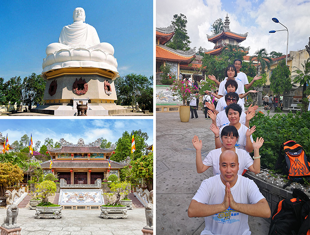 芽莊有一座以中文命名的佛教寺廟龍山寺,很多僧侶在這里修行。龍山寺是芽莊最大的寺院,始建于1889年,經(jīng)過數(shù)次裝修、重建,成為今天的外貌,寺內(nèi)有金色巨龍雕花裝飾、有蓮花池、佛教壁畫等。從正殿右邊,上 152 個(gè)石階后,就會(huì)看到高達(dá) 24 米的一座大佛。在芽莊市區(qū)任何地方都能看見這座巨大的白色大佛,安坐于蓮花之上,俯視眾生的歡樂與煩擾。綠之韻精英們領(lǐng)略它獨(dú)特的文化積淀和人文景觀,感受著越南人民的虔誠(chéng)信仰與生活熱情。