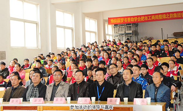 2017年11月29日,綠之韻集團安徽分公司“綠韻圓夢·書香助學(xué)”活動走進合肥市龍?zhí)翆W(xué)校。合肥市工商局經(jīng)濟檢查執(zhí)法局副局長梁宏祥受邀參加活動。綠之韻集團安徽分公司經(jīng)理趙軍攜綠之韻高級經(jīng)銷商葛慧霞、杭坤宇和張善慧 、溫民主 、吳元華 、邵明月 、高愛華 、尚元芹 、張新娟 、賈付勤 、侯俊 、李剛 、馬蘭 、郭鳳 、張城濤 、張龍等愛心志愿者參加活動。