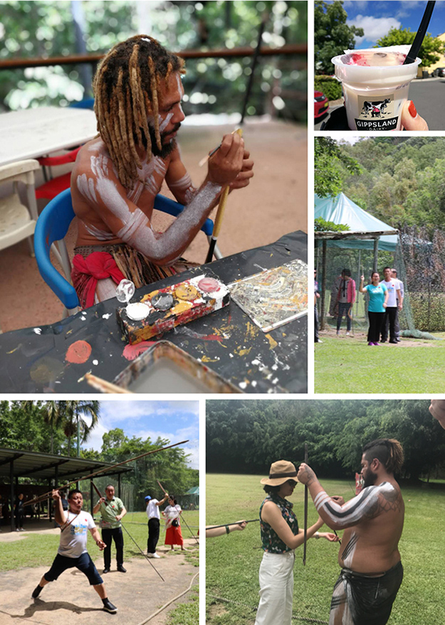 凱恩斯的查普凱土著文化公園是澳洲最負(fù)盛名的景區(qū)之一,其最大的特色是有著40000年歷史的查普凱土著文化。在這里,綠之韻家人們觀賞了查普凱部落的傳統(tǒng)表演,還了解了澳洲土著居民的傳統(tǒng)文化與習(xí)俗。在公園里有一片開闊的草原,土著人在進(jìn)行著飛去來標(biāo)表演,綠之韻人也加入其中體驗了一把投擲飛去來標(biāo)的樂趣。
