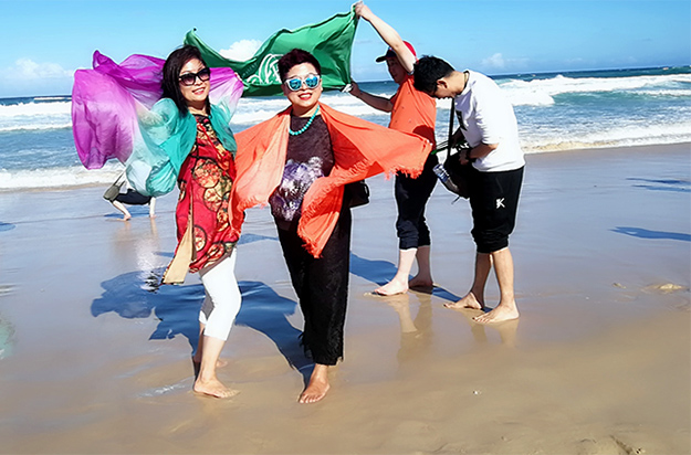 斯洛美酒莊,坐落于風(fēng)景如畫的Mount Cotton 山上。溫暖宜人的午后,綠之韻家人們閑坐在莊園中,品著一杯口味極佳的葡萄酒,耳邊飄來低沉優(yōu)雅的爵士樂。黃金海岸是澳大利亞的假日游樂勝地,這里有著明媚的陽光、連綿的白色沙灘、湛藍(lán)透明的海水和浪漫的棕櫚林。綠之韻家人們沐浴著陽光,腳踩著世界上最柔軟的細(xì)沙,在沙灘上盡情地展現(xiàn)著自己美好的曲線,留下了一串串的足跡,成為海邊最靚麗的一道風(fēng)景線。