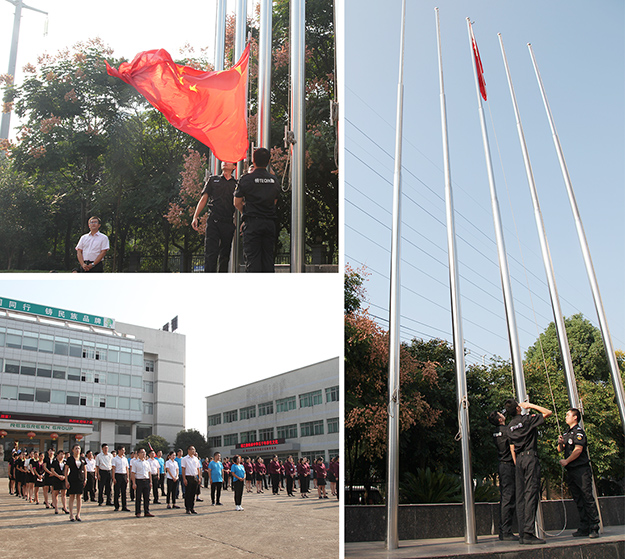 上午8點整,在莊嚴的氣氛中,護旗手邁著矯健的步伐來到國旗臺下。雄壯的國歌響起,護旗手振臂一揮,鮮艷的五星紅旗冉冉升起、迎風飄揚,綠之韻全體員工肅穆而立,滿懷崇敬之情向國旗行注目禮,送上了對祖國最美好的祝福。
