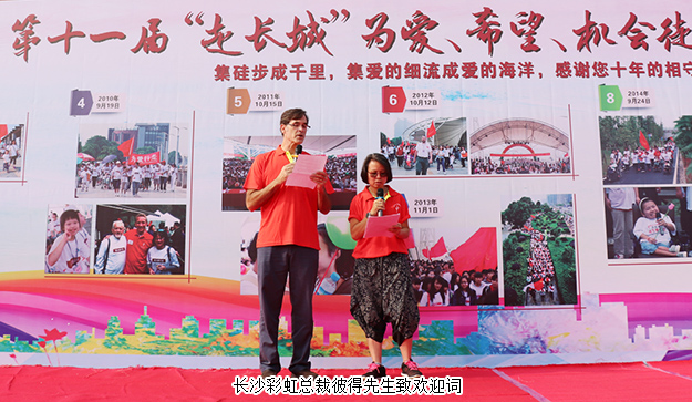 開幕式上,長沙彩虹總裁彼得先生致歡迎詞。長沙市第一福利院院長龍環(huán)致開幕詞,他們表示:2017年8月底,長沙彩虹孤殘兒童服務(wù)中心晨光中心的7名男孩已年滿16周歲,即將搬入社區(qū)小家庭,在新家庭學(xué)習(xí)生活自理、相互幫助、挖掘自身各種潛能。本次“走長城”活動就是為這7名男孩社區(qū)家庭籌措善款,感謝社會各界、愛心企業(yè)和社會人士的慷慨解囊,為推進孤殘兒童社區(qū)家庭的籌建項目,促進殘障事業(yè)的發(fā)展、共建幸福和諧家園貢獻出自己的一份力量。