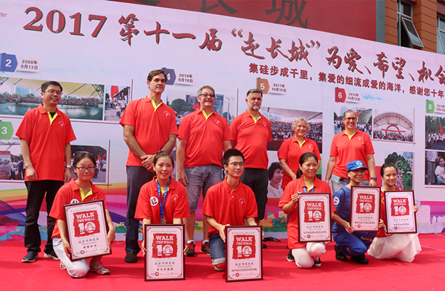 用腳步丈量愛心,用公益詮釋生命。活動結(jié)束后,愛心志愿者和其他愛心團隊成員、義工們彼此分享了行走過程中感人的故事和感悟。來自長沙彩虹的國際義工和晨光中心的孩子們?yōu)橹驹刚邆儙砹司臏?zhǔn)備的感恩答謝節(jié)目。閉幕式上,綠之韻集團董事總裁、綠之韻公益基金會理事長勞嘉為本次活動致辭:今年,是長沙彩虹“走長城”活動的第十一個年頭,綠之韻愛心志愿者已連續(xù)多年參加了此項公益活動。我們攜手與孩子們一起行走,以實際行動號召各界愛心人士、企業(yè)參與到公益慈善的行列,為孤殘兒童獻愛心。奉獻一份愛心,就能點燃一片希望。今后,綠之韻將一如既往地支持各項公益慈善事業(yè),用實際行動去詮釋愛,傳遞愛,分享愛。活動最后,國際義工們還為愛心團隊、綠之韻愛心志愿者團隊頒發(fā)了“走長城”證書。
