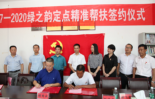 “秋老虎”的炎炎暑氣擋不住結(jié)對幫扶的絲絲溫情,舟車勞頓擋不住共謀發(fā)展的拳拳熱心。為了積極響應(yīng)長沙市委市政府“百企連百戶”活動號召,2017年9月18日,綠之韻集團走進瀏陽市小河鄉(xiāng)烏石村開展點對點幫扶活動,長沙市政協(xié)辦公廳副調(diào)研員兼機關(guān)黨委專職副書記黃領(lǐng)先,瀏陽經(jīng)開區(qū)黨群工作局局長、企業(yè)黨委專職副書記陳飛雪,瀏陽市小河鄉(xiāng)黨委書記劉林志,烏石村第一書記鄧水平等領(lǐng)導(dǎo)參加活動。湖南省政協(xié)委員、湖南省工商聯(lián)(總商會)副會長、綠之韻集團董事長胡國安,綠之韻集團黨委書記劉云、副書記許達仲出席簽約儀式,并為點對點幫扶家庭掛牌。