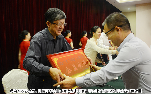會(huì)議期間,舉行了湖南省“一家一”助學(xué)就業(yè)·同心溫暖工程“致公系列班”簽約儀式,捐資20萬(wàn)建設(shè)致公·綠韻生態(tài)班,并代表愛(ài)心企業(yè)發(fā)言。