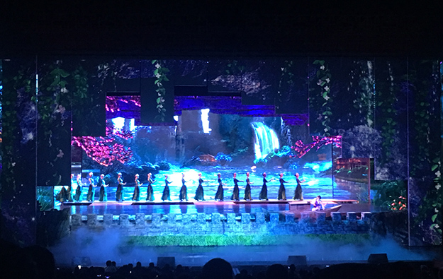 入夜的張家界微風(fēng)輕拂,風(fēng)情十足。到達(dá)張家界的第一天,綠之韻家人們乘著月色前往觀看“魅力湘西”大型文藝節(jié)目。“魅力湘西”是湘西文化的縮影,在保留湘西原生態(tài)民俗文化的前提下,將民族音樂和舞蹈與聲、光、電完美結(jié)合,讓觀眾欣賞到一臺(tái)原汁原味的湘西文化大餐,是當(dāng)?shù)厣贁?shù)民族風(fēng)俗的靈魂。綠之韻伙伴們興高采烈地盡情觀賞,直到節(jié)目結(jié)束都意猶未盡。