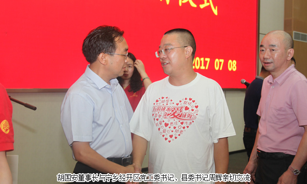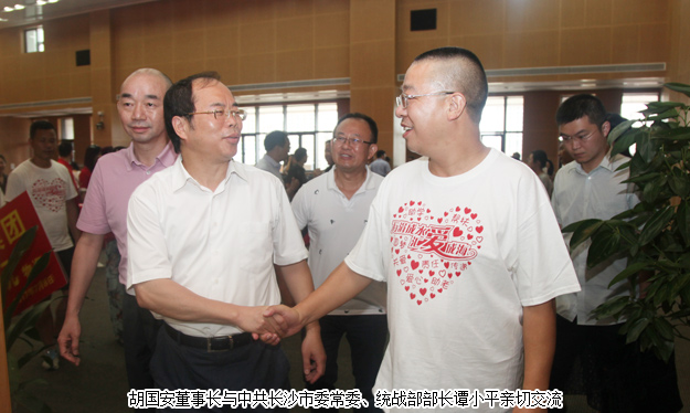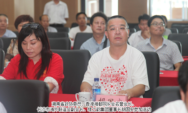 2017年7月8日,心連心、共命運——長沙市港澳臺僑海外代表抗洪救災捐贈活動在寧鄉(xiāng)舉行,中共長沙市委常委、統(tǒng)戰(zhàn)部部長譚小平,長沙市政協(xié)黨組織副書記、副主席石長松,中共長沙市委統(tǒng)戰(zhàn)部常務副部長劉映群,中共長沙市委統(tǒng)戰(zhàn)部副部長、市僑聯(lián)黨組書記王國平,中共長沙市委統(tǒng)戰(zhàn)部副部長、市臺辦主任袁義和等領導出席活動。湖南省政協(xié)委員、香港湘都同鄉(xiāng)會名譽會長、長沙市海外聯(lián)誼會副會長、綠之韻集團董事長胡國安,長沙市政協(xié)常委、香港長沙聯(lián)誼會執(zhí)行會長、善德集團董事長張曉琴,湖南省綠之韻公益基金會秘書長蔣文、副會長胡武安等與數(shù)十名長沙市港澳臺僑海外代表企業(yè)家共同參與活動,并通過牽頭募捐和以身作則,共籌集619余萬愛心款物深入寧鄉(xiāng)重災區(qū),希望幫助受災群眾早日重建家園、恢復正常生活秩序。