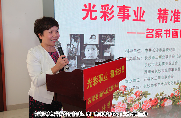 弘揚光彩事業(yè)精神,同心傳播正能量。2017年5月5日,由中共長沙市委統(tǒng)戰(zhàn)部指導(dǎo),長沙市工商業(yè)聯(lián)合會、長沙市光彩事業(yè)促進(jìn)會和湖南省長沙市光彩事業(yè)基金會聯(lián)合主辦的“光彩事業(yè) 精準(zhǔn)扶貧”名家書畫作品義賣活動在長沙隆重舉行。湖南省第十屆政協(xié)副主席譚仲池,中共長沙市委常委、統(tǒng)戰(zhàn)部部長譚小平,長沙市政協(xié)副主席、市工商聯(lián)主席彭繼球,中共長沙市委統(tǒng)戰(zhàn)部副部長、市工商聯(lián)黨組書記丁文,中共長沙市開福區(qū)區(qū)委書記沈裕謀,湖南省工商聯(lián)(總商會)副會長、長沙市光彩事業(yè)基金會理事長、綠之韻集團董事長胡國安等領(lǐng)導(dǎo)嘉賓出席活動。綠之韻集團總裁、湖南省綠之韻公益基金會理事長勞嘉,秘書長蔣文受邀參加活動,并在現(xiàn)場為愛舉牌。