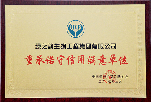 中國保護(hù)消費(fèi)者基金會根據(jù)《消費(fèi)者權(quán)益保護(hù)法》所賦予的職能和職責(zé),以保護(hù)消費(fèi)者合法權(quán)益、提高消費(fèi)者地位、推進(jìn)保護(hù)消費(fèi)者事業(yè)的發(fā)展為宗旨,在全國范圍內(nèi)開展保護(hù)消費(fèi)者權(quán)益相關(guān)工作。綠之韻集團(tuán)認(rèn)真貫徹執(zhí)行《消費(fèi)者權(quán)益保護(hù)法》《產(chǎn)品質(zhì)量法》《廣告法》及其他相關(guān)法律法規(guī),嚴(yán)格按照國家的行業(yè)規(guī)定與質(zhì)量標(biāo)準(zhǔn)組織生產(chǎn),積極接受政府各職能部門、消費(fèi)者組織和廣大消費(fèi)者監(jiān)督,經(jīng)過中國保護(hù)消費(fèi)者基金會及活動評審組的層層評審,被光榮授予“重承諾守信用滿意單位”稱號。
