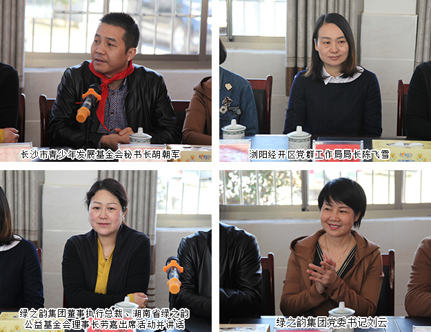 值此學(xué)雷鋒活動(dòng)月之際,2017年3月2日,由長沙市青少年發(fā)展基金會(huì)、綠之韻集團(tuán)黨委、湖南省綠之韻公益基金會(huì)聯(lián)合主辦的“新春慰問之愛在小河鄉(xiāng)”愛心助學(xué)回訪活動(dòng)在瀏陽市小河鄉(xiāng)烏石村小學(xué)舉行。長沙市青少年發(fā)展基金會(huì)秘書長胡朝軍,國家級(jí)瀏陽經(jīng)開區(qū)黨群工作局局長陳飛雪、副局長晏瓊,瀏陽經(jīng)開區(qū)團(tuán)委書記楊國理,綠之韻集團(tuán)董事執(zhí)行總裁、湖南省綠之韻公益基金會(huì)理事長勞嘉,綠之韻集團(tuán)黨委書記劉云等攜手綠之韻黨員、團(tuán)員代表及愛心志愿者,回訪慰問湖南省綠之韻公益基金會(huì)“綠韻圓夢·書香助學(xué)”項(xiàng)目于2016年幫扶的10名貧困學(xué)生,并為他們送上慰問品,延續(xù)愛心。
