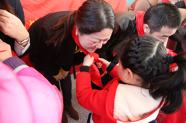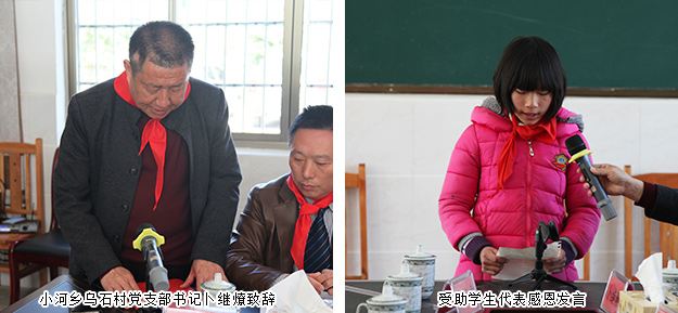 活動(dòng)現(xiàn)場,孩子們?yōu)閰⑴c此次活動(dòng)的領(lǐng)導(dǎo)及愛心志愿者們佩戴了紅領(lǐng)巾,以特殊的方式表達(dá)了他們的感激之情。會(huì)上,小河鄉(xiāng)烏石村黨支部書記卜繼燎首先致辭并對(duì)綠之韻集團(tuán)黨委、綠之韻公益基金會(huì)的愛心善行表示感謝。這次的回訪活動(dòng),不僅僅表達(dá)了一份關(guān)懷,更傳遞著一種美德,一種精神,一種力量。