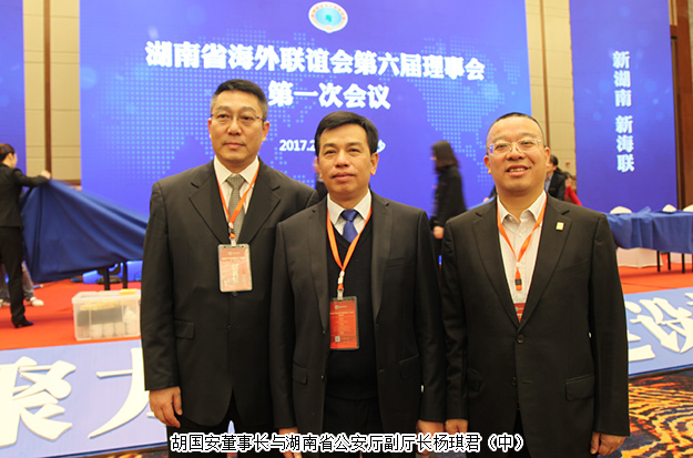 聚力新海聯(lián),建設(shè)新湖南。2017年2月18-19日,湖南省海外聯(lián)誼會(huì)第六屆理事會(huì)第一次會(huì)議在長(zhǎng)沙隆重召開。中共湖南省委書記、省人大常委會(huì)主任杜家毫,中共湖南省委副書記、省人民政府省長(zhǎng)許達(dá)哲,中共湖南省委常委、省委統(tǒng)戰(zhàn)部部長(zhǎng)黃蘭香,湖南省人民政府副省長(zhǎng)、省政府秘書長(zhǎng)楊光榮,中央統(tǒng)戰(zhàn)部三局巡視員、中華海外聯(lián)誼會(huì)副秘書長(zhǎng)許光任,中共湖南省委統(tǒng)戰(zhàn)部常務(wù)副部長(zhǎng)譚平等領(lǐng)導(dǎo)出席活動(dòng)。湖南省政協(xié)委員、香港湘都同鄉(xiāng)會(huì)名譽(yù)會(huì)長(zhǎng)、綠之韻集團(tuán)董事長(zhǎng)胡國(guó)安受邀出席會(huì)議,并當(dāng)選湖南省海外聯(lián)誼會(huì)第六屆理事會(huì)常務(wù)理事。