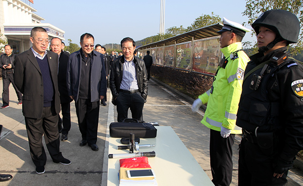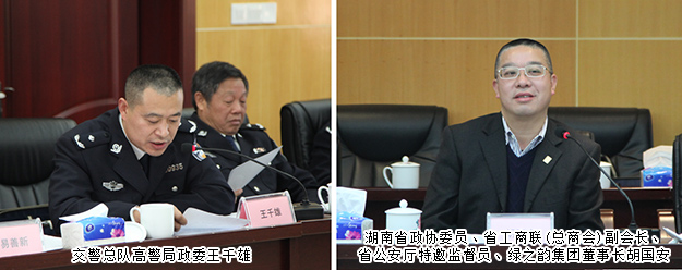 2016年12月16日下午,湖南省政協(xié)委員、省工商聯(lián)(總商會)副會長、省公安廳特邀監(jiān)督員、綠之韻集團董事長胡國安隨同湖南省公安廳黨委委員、紀委書記周賽保,省公安廳警令部副主任戴綱、紀委副書記宋紅兵、紀委副書記方士林、刑偵總隊政委馮偉儉、交警總隊政委楊能、交警總隊高警局政委王千雄、警務督察總隊政委王建國等一行赴湖南省高速警察局株洲支隊荷塘大隊調(diào)研。