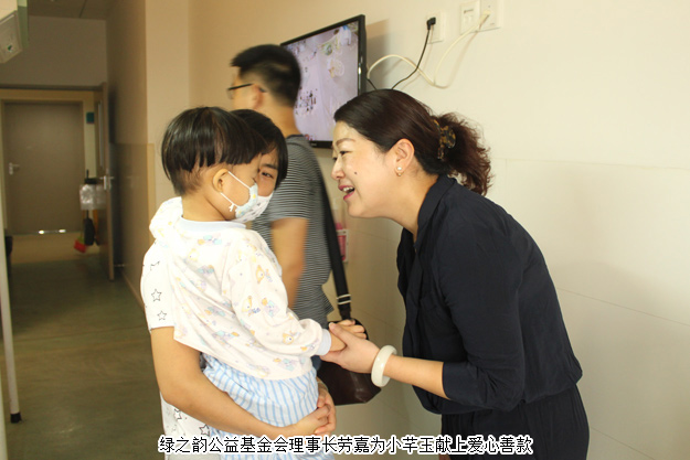 在得知了“小芊玉”的情況之后,綠之韻公益基金會(huì)理事長勞嘉親赴醫(yī)院探望,并將愛心善款送到小芊玉父母手中,并表示,綠之韻集團(tuán)將會(huì)持續(xù)關(guān)注“小芊玉”的治療情況,她也呼吁更多的愛心人士伸出援手,幫助“小芊玉”早日戰(zhàn)勝病魔,快樂健康地長大。在愛的接力下,小芊玉即將赴北京接受骨髓配型。關(guān)愛生命,綠之韻與愛同在!