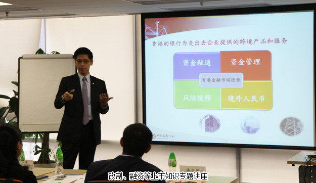 本次赴港營(yíng)商學(xué)習(xí)中,《環(huán)球市場(chǎng)最新發(fā)展及機(jī)遇》《內(nèi)地企業(yè)走出去-海外投資及并購(gòu)所需要的調(diào)查及風(fēng)險(xiǎn)管理》《內(nèi)地企業(yè)如何充分利用香港融資平臺(tái)、不同的融資管理》等課題內(nèi)容都是邀請(qǐng)領(lǐng)域內(nèi)資深專家學(xué)者授課,各機(jī)構(gòu)針對(duì)企業(yè)實(shí)際情況,分別就改制、融資、財(cái)務(wù)、稅收及港上市需要注意的問(wèn)題做了專題講座,并針對(duì)企業(yè)提出的問(wèn)題做了分析解答。通過(guò)學(xué)習(xí),相關(guān)企業(yè)對(duì)香港資本市場(chǎng)的基本特點(diǎn)、上市的條件及流程有了初步的了解,并對(duì)境內(nèi)、海外上市的不同要求與利弊因素有了直觀的認(rèn)識(shí),增強(qiáng)了上市融資信心,明確了今后上市的方向與路徑。胡國(guó)安董事長(zhǎng)表示:“通過(guò)這次考察學(xué)習(xí),與這些機(jī)構(gòu)的接觸,對(duì)香港上市有了更深入的了解,并且相關(guān)中介機(jī)構(gòu)對(duì)我們的建議也非常有用,讓我對(duì)企業(yè)上市有了更深的認(rèn)識(shí),也讓我開(kāi)始思考怎樣的上市方式更有利于企業(yè)發(fā)展。”