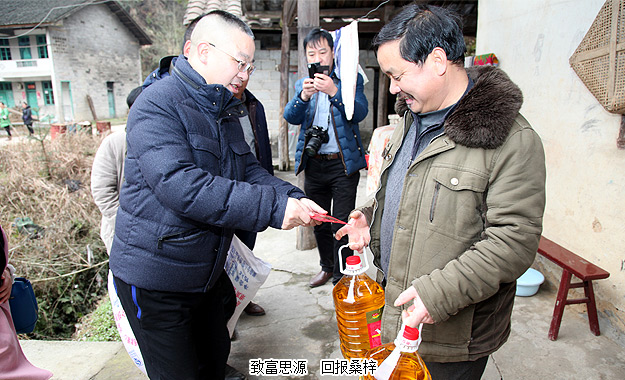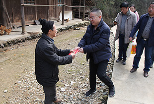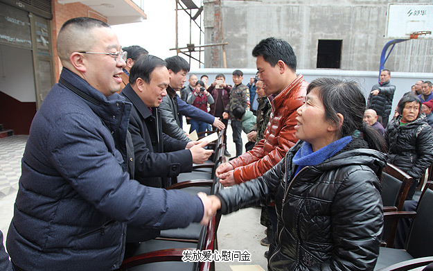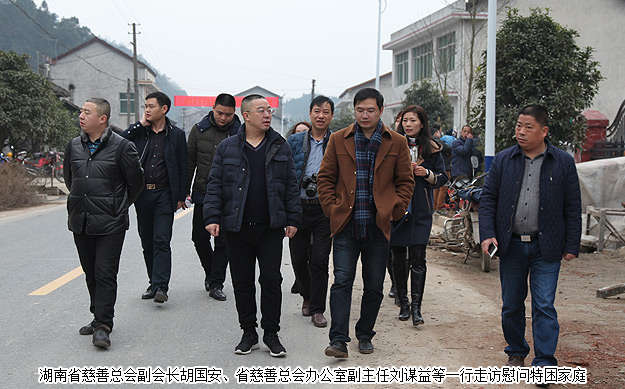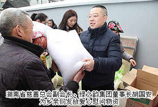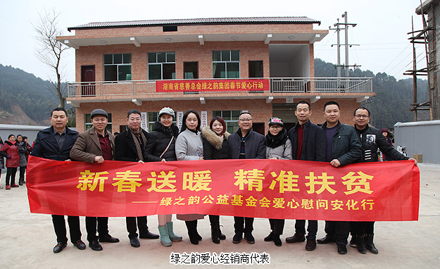 春節(jié)將至,鄉(xiāng)音裊裊,聊敘家鄉(xiāng)情;綠韻大愛,恩情悠悠,反哺桑梓心。2016年2月4日,中共安化縣委常委、政法委書記羅必勝,湖南省慈善總會副會長、綠之韻集團(tuán)董事長胡國安,湖南省慈善總會辦公室副主任劉謀益,湖南省志愿服務(wù)指導(dǎo)中心副主任蔣鐵陽,安化縣慈善總會辦公室主任肖晟,中共安化縣冷市鎮(zhèn)黨委書記周華山、鎮(zhèn)長楊鋒,綠之韻公益基金會秘書長蔣文及愛心志愿者代表等一行來到湖南省安化縣冷市鎮(zhèn)胡家村,為鄉(xiāng)親們送上慰問金、米、油和日用品等物資,為他們送去新春的祝福。湖南都市頻道、紅網(wǎng)、瀟湘晨報、安化電視臺等多家媒體對本次愛心慰問活動進(jìn)行了報道。