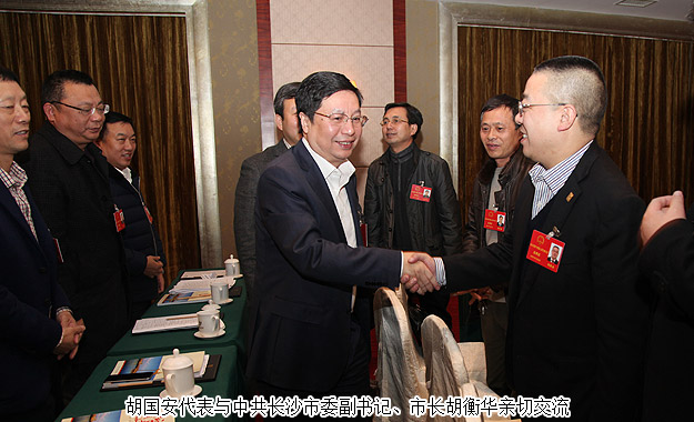 大會(huì)開幕式后,中共湖南省委常委、長(zhǎng)沙市委書記易煉紅,長(zhǎng)沙市委副書記、市長(zhǎng)胡衡華,長(zhǎng)沙市人大常委會(huì)主任袁觀清等來(lái)到代表駐地,看望參加長(zhǎng)沙市十四屆人大四次會(huì)議的全體代表,鼓勵(lì)大家暢所欲言、獻(xiàn)計(jì)獻(xiàn)策。胡國(guó)安代表與各位領(lǐng)導(dǎo)、代表座談時(shí)發(fā)言,“在今年的政府工作報(bào)告中,市委市政府始終圍繞“創(chuàng)新、協(xié)調(diào)、綠色、開放、共享”八個(gè)字做文章,尤其是關(guān)于民生、精準(zhǔn)扶貧的篇幅很大,讓人倍感務(wù)實(shí)和與時(shí)俱進(jìn),給人很強(qiáng)的信心。市委市政府著力推進(jìn)瀏陽(yáng)河生態(tài)經(jīng)濟(jì)帶建設(shè)的整體思路與綠之韻集團(tuán)的綠色、生態(tài)經(jīng)濟(jì)發(fā)展思路,以及在瀏陽(yáng)河與撈刀河畔建立生態(tài)休閑園、建立五星級(jí)生態(tài)酒店等未來(lái)發(fā)展規(guī)劃不謀而合,這充分體現(xiàn)了市委市政府決策的前瞻性和綠之韻規(guī)劃的正確性。同時(shí),這次會(huì)議在承前啟后的特殊時(shí)期召開,可謂意義特別重大。如何謀劃好‘十三五’發(fā)展,實(shí)現(xiàn)好‘十三五’的精彩開局和開門紅,是我們所有人大代表十分關(guān)切、十分關(guān)心的問(wèn)題。綠之韻集團(tuán)將緊緊團(tuán)結(jié)在市委、市政府周圍,搶抓機(jī)遇,加快發(fā)展,為努力建設(shè)能量更大、實(shí)力更強(qiáng)、城鄉(xiāng)更美、民生更爽的長(zhǎng)沙,貢獻(xiàn)自己應(yīng)有的力量!”