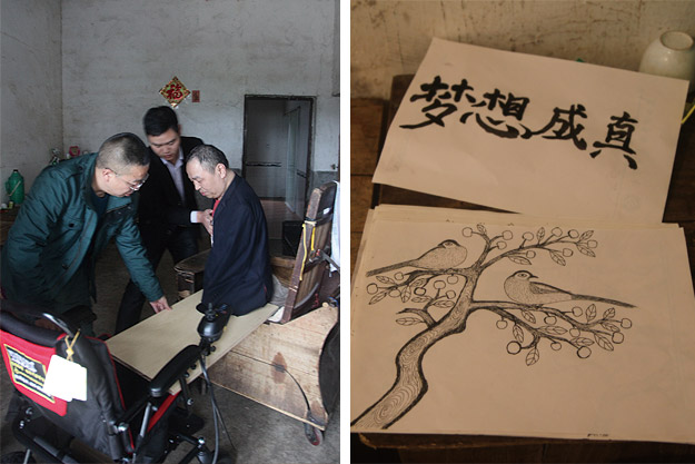 導讀:借助由綠之韻公益基金會捐贈的電動輪椅,周國民實現了自己自由行動的夢想,他感恩、興奮,迫不及待的想熟練掌握電動輪椅的使用方法,將身體從自己設計請人制作的木制手工輪椅當中解放出來,最大的愿望是:畫他的畫,有一天能辦自己個人的書畫展,實現自己人生的人生價值。