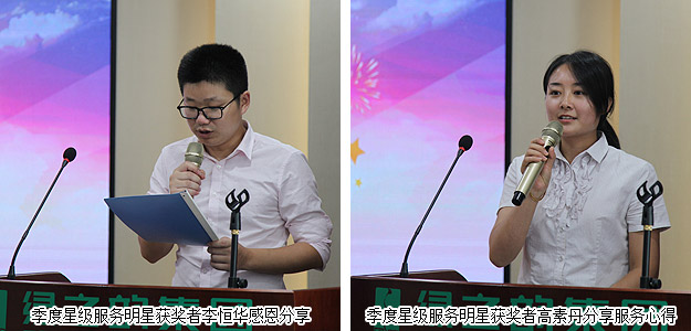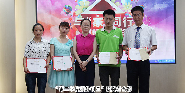 2015年新晉員工在大會上進(jìn)行了自我介紹和風(fēng)采展示,彰顯出新人積極向上的精神面貌。同時,大會還對表現(xiàn)優(yōu)秀的員工和集體給予了隆重表彰:業(yè)務(wù)服務(wù)部、數(shù)據(jù)管理中心、產(chǎn)品綜合管理部、山東分公司、儲運(yùn)部榮獲“第二季度優(yōu)秀服務(wù)集體”;侯俊霞、李恒華、王艷、譚紅、陳建輝、李倩婷、王芬、高素丹、夏丹、曹峰、盧再林、劉圣雄、趙光意等十多位員工光榮成為“第二季度服務(wù)明星”;夏運(yùn)良、王芬、王壯在黨支部的領(lǐng)導(dǎo)下,積極參與黨組織各項(xiàng)活動,榮獲“綠之韻黨支部優(yōu)秀共產(chǎn)黨員”稱號。獲獎部門代表、個人依次踏上領(lǐng)獎臺,享受大家的聲聲祝福和熱烈掌聲,分享快樂和喜悅。