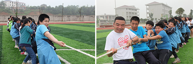 捐贈(zèng)活動(dòng)結(jié)束后,在胡國安董事長、勞嘉副總裁的親自帶領(lǐng)下,綠之韻的愛心志愿者及經(jīng)銷商們還與學(xué)校師生互動(dòng),進(jìn)行拔河比賽、乒乓球比賽,現(xiàn)場同學(xué)們熱情高漲,歡呼聲、加油聲此起彼伏。