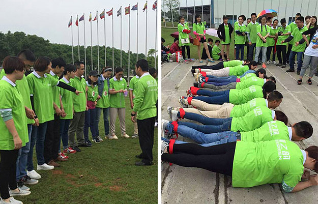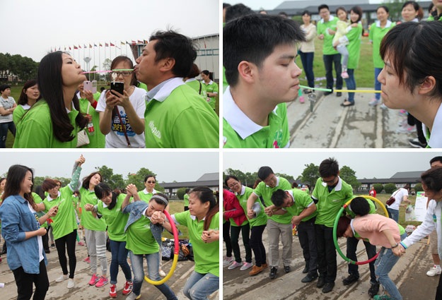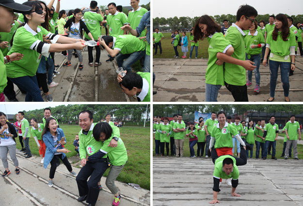 在千龍湖度假村的活動草坪上,活動組委會將所有參加活動的員工分成了六組,在六個小組間展開了別開生面、妙趣橫生的趣味競技活動。在綠之韻集團(tuán)董事長胡國安先生、董事常務(wù)副總裁勞嘉女士的親切指導(dǎo)下,在現(xiàn)場工作人員的精心組織和安排下,六個小組各推選出一個組長,并帶領(lǐng)所有組員充分參與“長龍越嶺”、小組接力、綁腿賽跑等團(tuán)隊協(xié)作拓展活動。