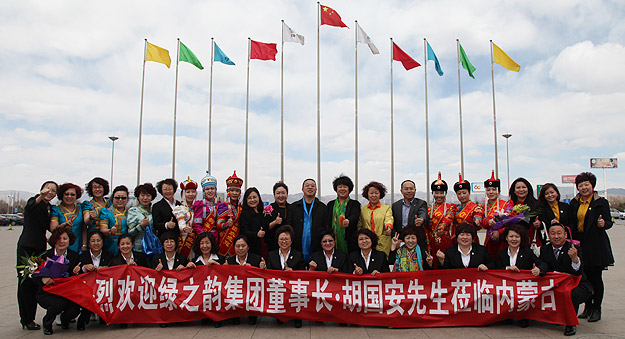 2015年4月9日,胡國安董事長借參加綠之韻內(nèi)蒙古高峰論壇之機(jī),親赴內(nèi)蒙古一線市場考察情況,了解當(dāng)?shù)厥袌鲞\(yùn)營、專賣店建設(shè)等情況。綠之韻內(nèi)蒙古地區(qū)優(yōu)秀經(jīng)銷商王連坤、郝建兵、張聞英、喬桂英等全程陪同。