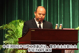 本次會(huì)議由中共開發(fā)區(qū)黨工委書記周岳云主持,黨工委副書記、管委會(huì)主任郭力夫作了“把握新常態(tài),實(shí)現(xiàn)新跨越,奮力躍上‘千億園區(qū)’新臺(tái)階”的講話。他首先回顧2014年經(jīng)濟(jì)工作,瀏陽經(jīng)開區(qū)克服宏觀經(jīng)濟(jì)形勢(shì)下行的影響,迎難而上,真抓實(shí)干、開拓創(chuàng)新,各項(xiàng)工作呈現(xiàn)出又好又快的發(fā)展局面,先后榮獲湖南省加速推進(jìn)新型工業(yè)化一等獎(jiǎng)、長(zhǎng)沙市2014年度國(guó)家級(jí)園區(qū)績(jī)效考核第一名,綜合實(shí)力在全省109個(gè)園區(qū)排名中挺進(jìn)3個(gè)位次躍入前六強(qiáng)。他指出,瀏陽經(jīng)開區(qū)2015年經(jīng)濟(jì)總的指導(dǎo)思想是:以“四個(gè)前面”的治國(guó)方略為方針,深入貫徹落實(shí)中共長(zhǎng)沙市委、瀏陽市委經(jīng)濟(jì)工作會(huì)議精神,把握新常態(tài),力求新作為,突出項(xiàng)目拉動(dòng)、驅(qū)動(dòng)創(chuàng)新、改革推動(dòng)、管理帶動(dòng),加快實(shí)現(xiàn)長(zhǎng)沙、瀏陽的雙向融城,以項(xiàng)目建設(shè)推動(dòng)產(chǎn)業(yè)結(jié)構(gòu)調(diào)整、以產(chǎn)業(yè)結(jié)構(gòu)調(diào)整推動(dòng)園區(qū)快速發(fā)展,努力成為長(zhǎng)沙高科技產(chǎn)業(yè)的重要增長(zhǎng)極、瀏陽經(jīng)濟(jì)發(fā)展的主陣地,奮力邁上“千億園區(qū)”新臺(tái)階。