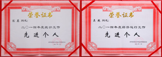 會(huì)議還集中表彰了2014年度先進(jìn)企業(yè)及個(gè)人,綠之韻集團(tuán)被國(guó)家級(jí)瀏陽經(jīng)開區(qū)管委會(huì)授予“2014年度目標(biāo)管理獎(jiǎng)一等獎(jiǎng)”、“2014年度名牌產(chǎn)品獎(jiǎng)”、“2014年度稅收貢獻(xiàn)獎(jiǎng)”、“2014年度企業(yè)規(guī)模獎(jiǎng)”、 “2014年度統(tǒng)計(jì)工作先進(jìn)單位”等多項(xiàng)殊榮,綠之韻國(guó)際大酒店榮獲“2014年度節(jié)能減排獎(jiǎng)”、綠之韻生態(tài)榮獲“2014年度稅收貢獻(xiàn)獎(jiǎng)”。企業(yè)員工陳英被評(píng)為“2014年度統(tǒng)計(jì)工作先進(jìn)個(gè)人”、吳艷被評(píng)為“2014年度經(jīng)濟(jì)運(yùn)行工作先進(jìn)個(gè)人”。