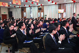 董事長(zhǎng)胡國(guó)安告誡大家,綠之韻是一個(gè)與家人分享的平臺(tái),是一個(gè)出新成就的舞臺(tái),不管是各位員工,還是經(jīng)銷(xiāo)商都可以成為自己家人的驕傲,學(xué)習(xí)的榜樣。同時(shí),向公司全體上下致以誠(chéng)摯的新春?jiǎn)柡颍瑢?duì)2014年各部門(mén)堅(jiān)持不懈、求真務(wù)實(shí)、兢兢業(yè)業(yè)的工作,積極化解各種挑戰(zhàn),在各種工作困境中突圍,企業(yè)始終保持著良性發(fā)展勢(shì)頭,取得了一系列新成績(jī)、新突破予以肯定與贊揚(yáng)!為大家點(diǎn)贊,為年輕的團(tuán)隊(duì)點(diǎn)贊,為天城網(wǎng)點(diǎn)贊,為商學(xué)院點(diǎn)贊,為第一次投資房地產(chǎn)點(diǎn)贊,為曾經(jīng)受到批評(píng)的員工點(diǎn)贊,為所有在綠之韻事業(yè)里奮斗過(guò)的朋友點(diǎn)贊……最后,胡國(guó)安董事長(zhǎng)還表示,希望全體綠之韻人2015年團(tuán)結(jié)協(xié)作,再接再厲,譜寫(xiě)輝煌新章!