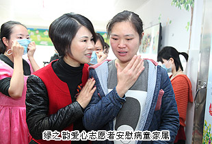 “多想帶你看看滿眼綠草,可是小小的天空,把你鎖牢。你若真是天使落了塵,也要陪我走完這一程。你所有的痛,都在撕扯我的疼,無論多么艱辛,我都將用一生為你守護(hù)……”湖南省人民醫(yī)院“生命小戰(zhàn)士會(huì)”活動(dòng)中心,綠之韻愛心志愿者的歌聲傳遞著愛、分享著愛、見證著愛,帶來了生活的快樂、生命的堅(jiān)強(qiáng)、生存的信心。