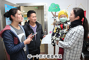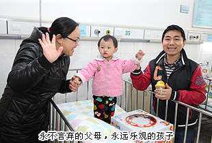 “我打心底的佩服孩子們,佩服他們頑強(qiáng)的生命意志,在他們的眼中,就算是黑夜也同樣可以看見彩虹,這不是奇跡,一種對(duì)生命的信念。這里是一個(gè)大家庭,和諧、溫馨、充滿愛,正是這種愛讓家長(zhǎng)和孩子們充滿信心與病魔作斗爭(zhēng),并一次又一次的取得勝利,培養(yǎng)出這些勇敢的小戰(zhàn)士!”胡國(guó)安董事長(zhǎng)輕輕抱起一名3歲多的白血病患兒,一席話,深深感染著周圍的每一個(gè)人。