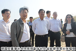 秋日暖照,浩瀚洞庭湖環(huán)繞的青山島迎來(lái)特殊的“游客”。2014年10月22日,湖南省人民政府副省長(zhǎng)何報(bào)翔以及省旅游局局長(zhǎng)張值恒、省國(guó)土資源廳資源廳副廳長(zhǎng)王善明、省水利廳巡視員劉佩亞、省工商聯(lián)副主席陳宏忠等一行來(lái)到洞庭湖實(shí)地察看,并就如何加快洞庭湖片區(qū)旅游開發(fā)展開調(diào)研。綠之韻集團(tuán)董事長(zhǎng)胡國(guó)安受邀參與洞庭湖區(qū)水上旅游項(xiàng)目開發(fā)以及游艇基地等項(xiàng)目評(píng)估。岳陽(yáng)市人民政府副市長(zhǎng)宋愛華、市政協(xié)主席、工商聯(lián)主席劉曉英等陪同調(diào)研。