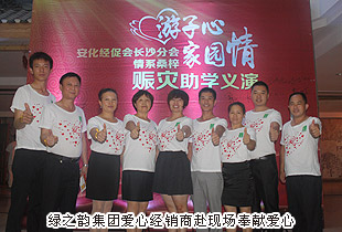 在接受湖南衛(wèi)視著名主持人王歡采訪時,胡國安董事長臉上溢滿凝重,眼中飽含熱淚,幾句簡單而樸實的話語幾乎感動了現(xiàn)場所有的人:“我在安化鄉(xiāng)音中啟蒙,伴著改革開放長大,無論身在何方,都無法割舍我對生我養(yǎng)我的家鄉(xiāng)安化的深深思念和無限牽掛。沒有安化,就沒有綠之韻;災(zāi)害無情,游子有愛。作為一名安化大山深處走出來的企業(yè)家,更應(yīng)關(guān)注家鄉(xiāng),情系家鄉(xiāng),建設(shè)家鄉(xiāng),回報家鄉(xiāng),主動承擔(dān)社會責(zé)任,用愛回報廣大桑梓。捐款只是一個開始,綠之韻集團將資助更多家鄉(xiāng)公益事業(yè),繼續(xù)關(guān)注安化災(zāi)區(qū)重建,幫助災(zāi)區(qū)的人民渡過難關(guān)、重建美好家園,幫助受災(zāi)的莘莘學(xué)子早日重返校園!”